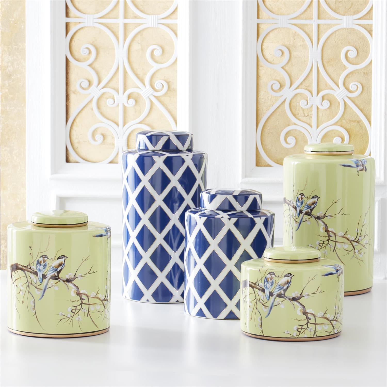 Pale Green Ceramic Lidded Ginger Jars