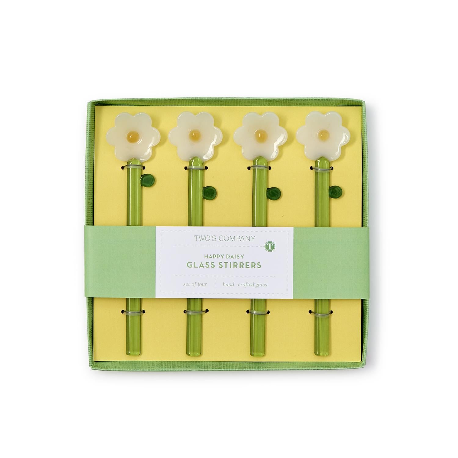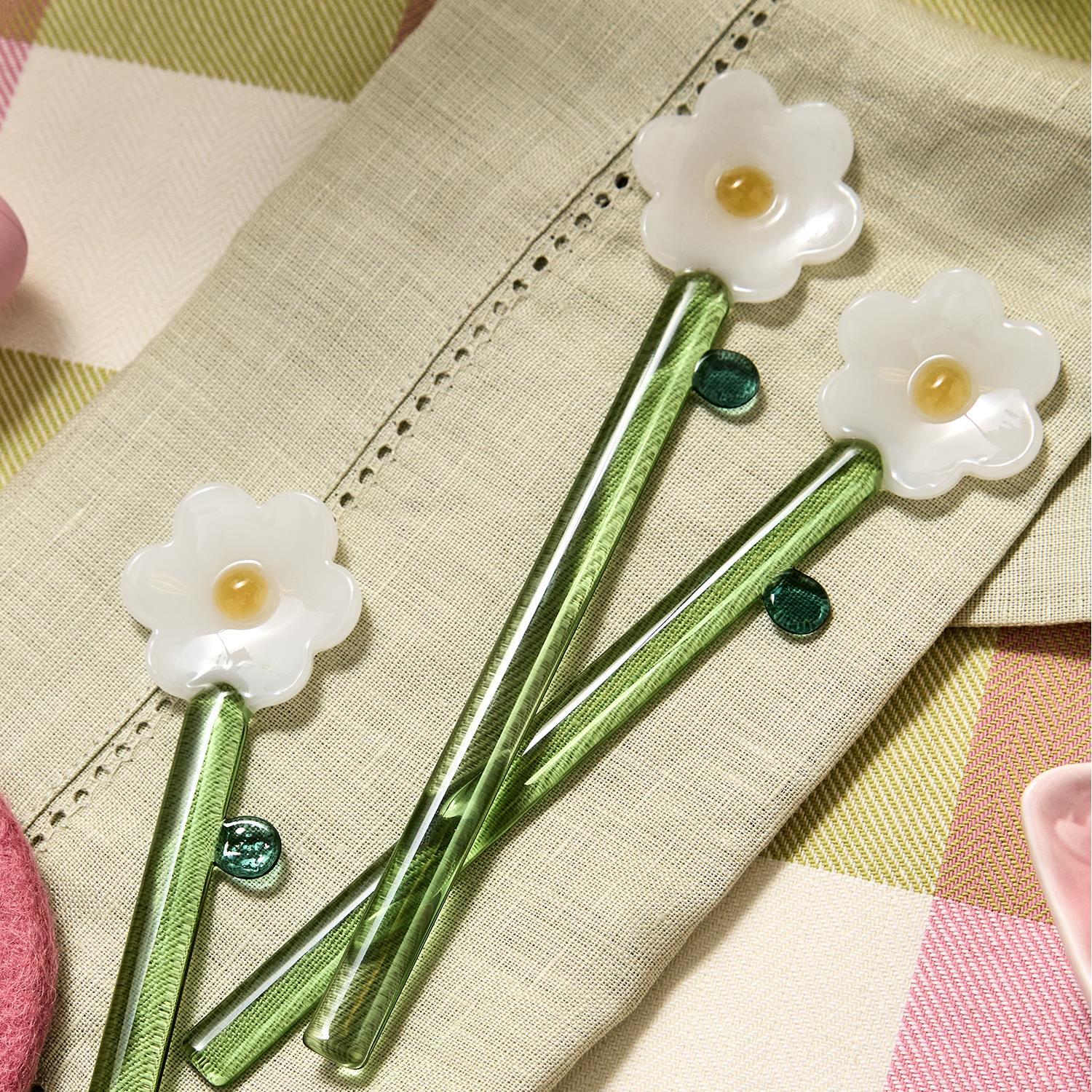 Set of 4 Daisy Flower Hand-Crafted Stirrers in a Gift Box