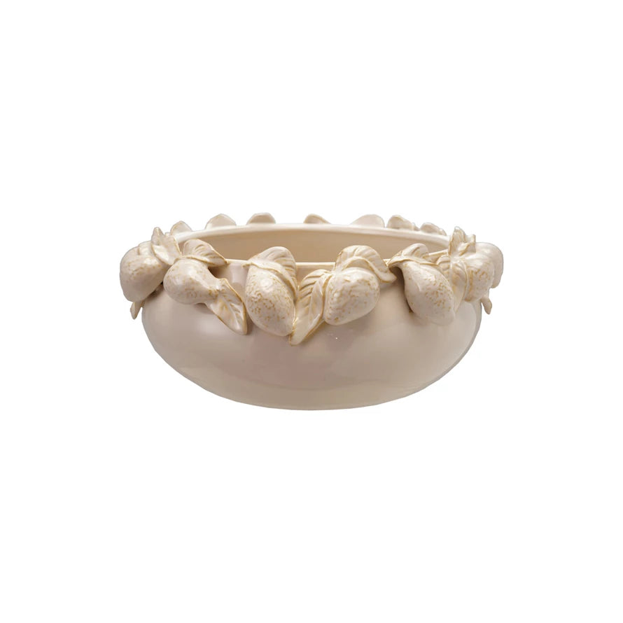 Stoneware Bowl with 3D Lemons on Rim, Cream Color