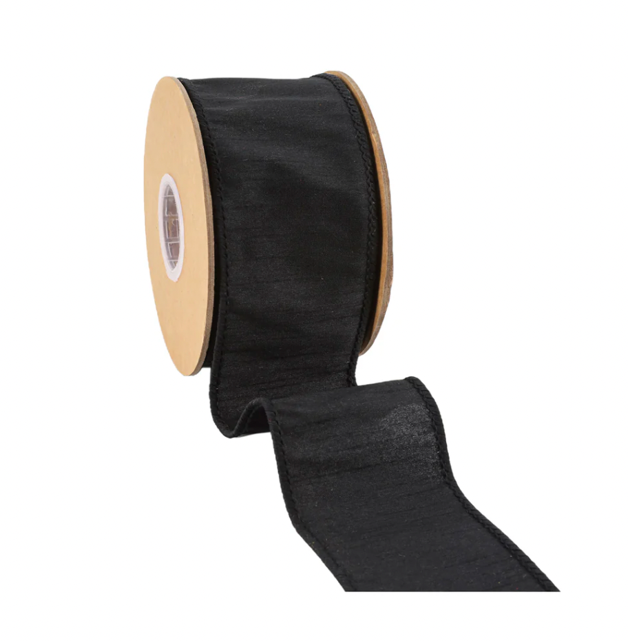 Wired Dupioni Ribbon | Black | 10 Yard Roll