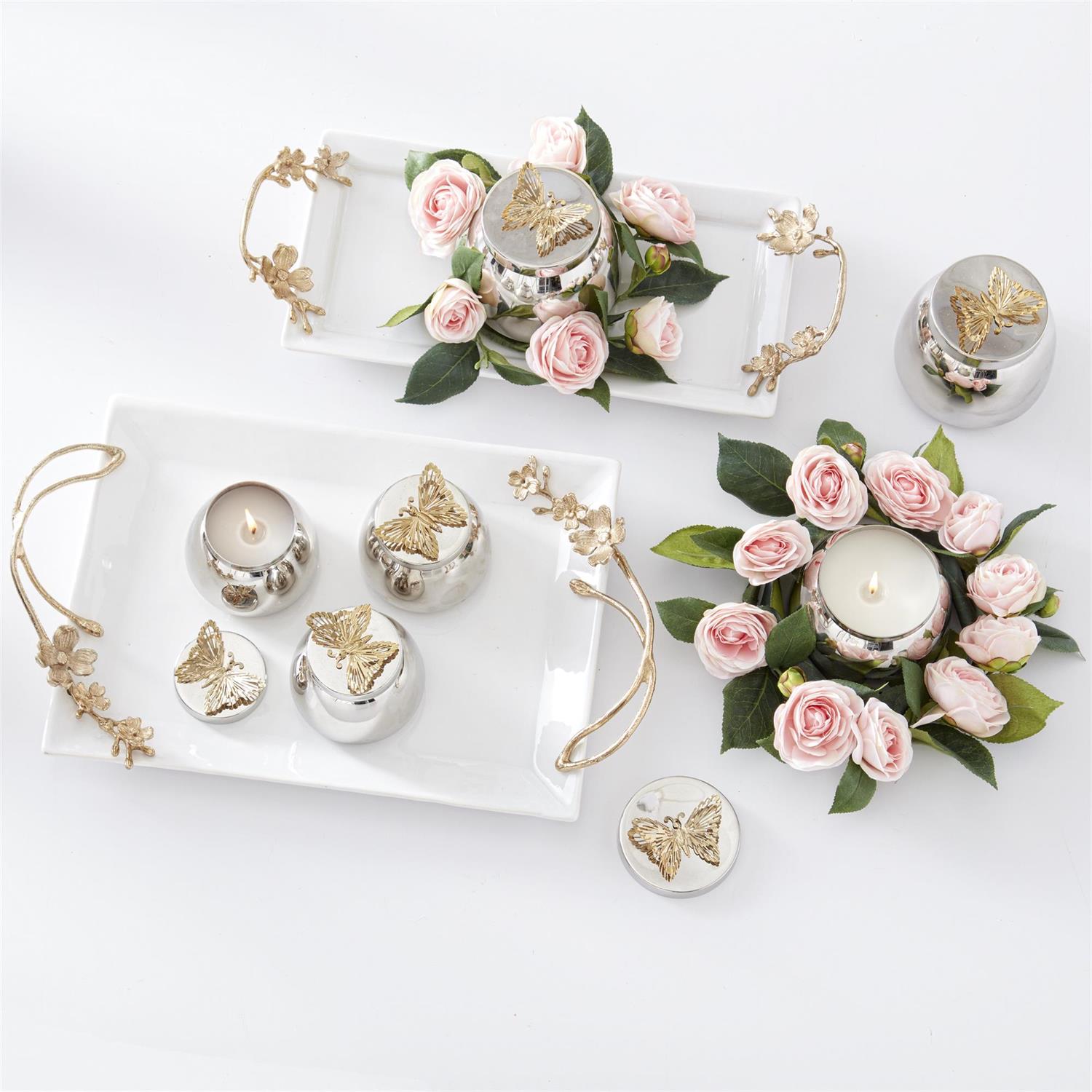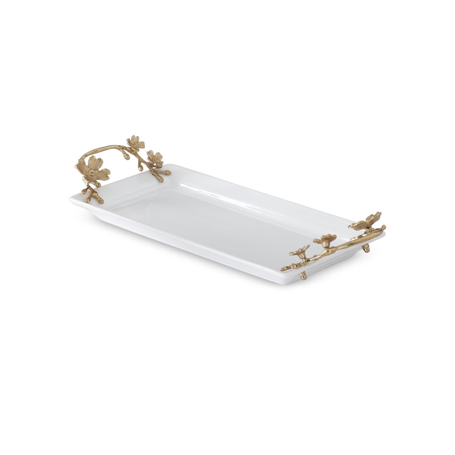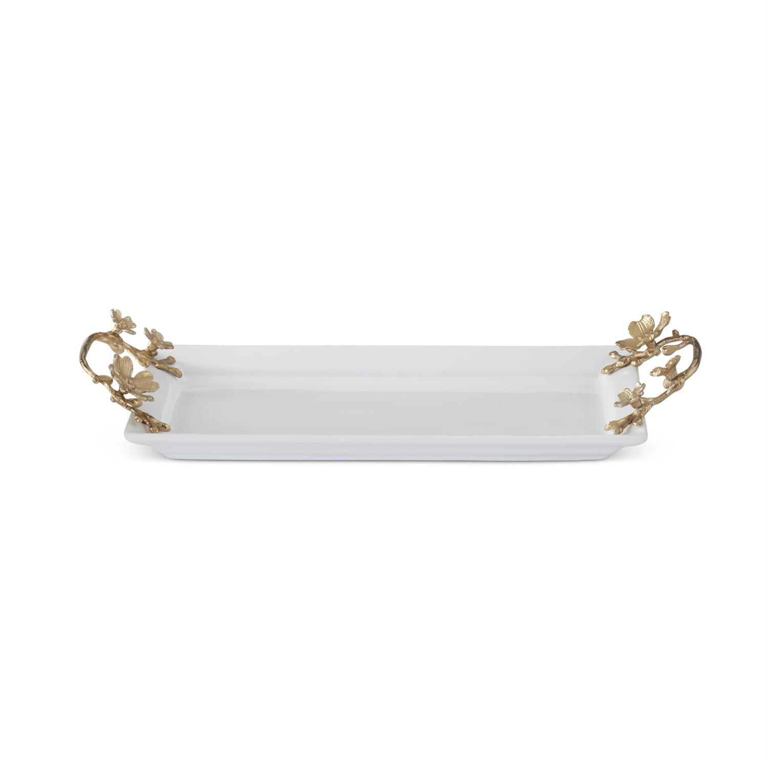 17.25 Inch White Ceramic Rectangular Tray w/Gold
