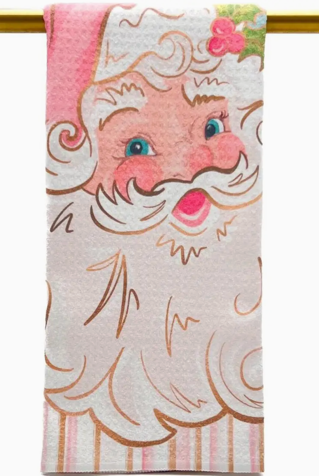 Pretty N' Pink Santa Tea Towel - Christmas Hand Towel