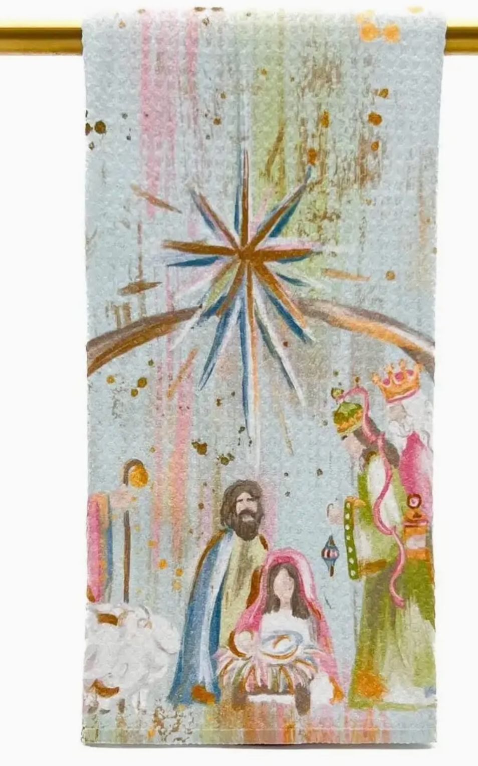 Pastel Nativity Tea Towel - Christmas Hand Towel