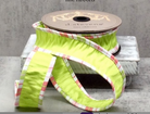 Description: 1.5" x 10yds faux dupion green pink stripe edge, lime green