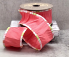 Description: 2.5" x 10yds faux dupion green pink stripe edge, watermelon pink