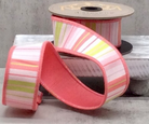 Description: 1.5" x 10yds faux dupion stripe watermelon pink back, pink white green