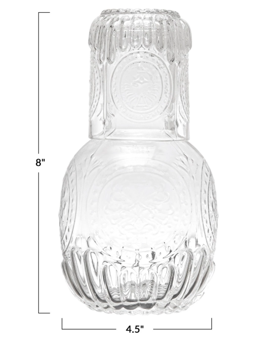 28 oz. Embossed Glass Carafe w/ 8 oz. Embossed Drinking Glass