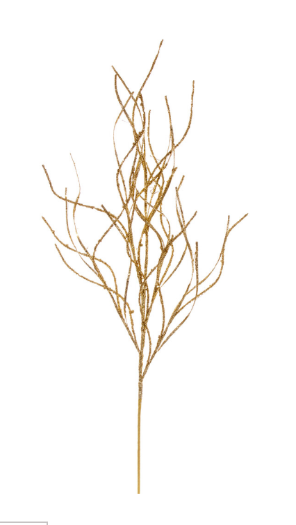 Vickerman 40" Gold Berry Cluster and Wavy Glitter Ball Spray. Includes 4 pieces per bag. It measures 40 inches from top to bottom.