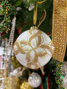 4"Gls Pearl/Gold Ornament