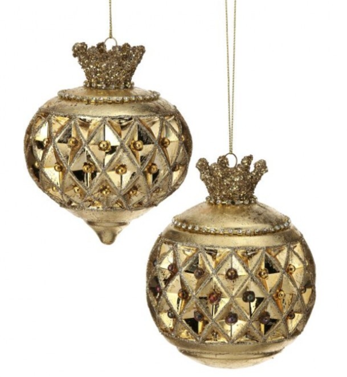 5" Gls Crown Ball/Finial Ornament 2/Ast