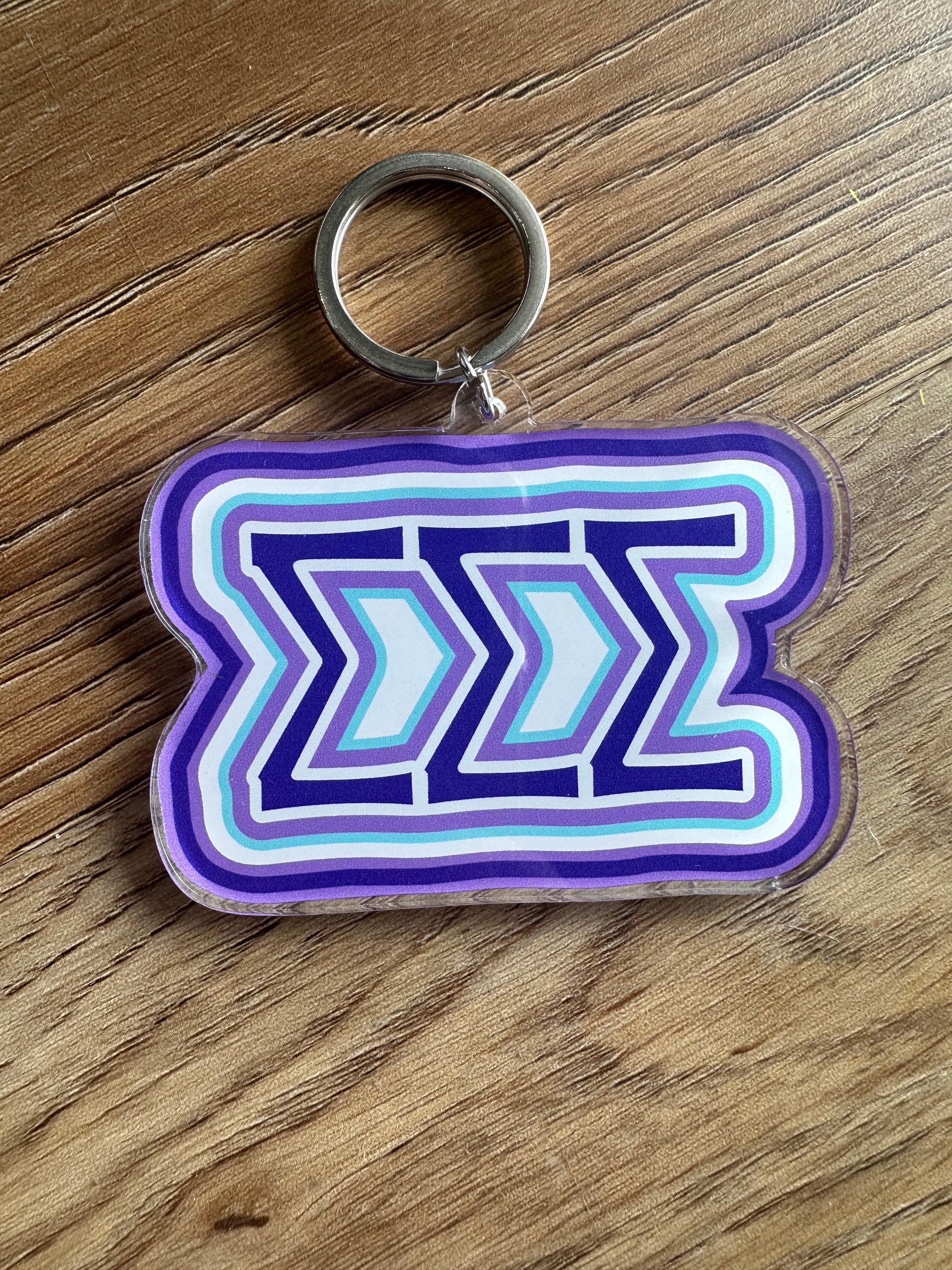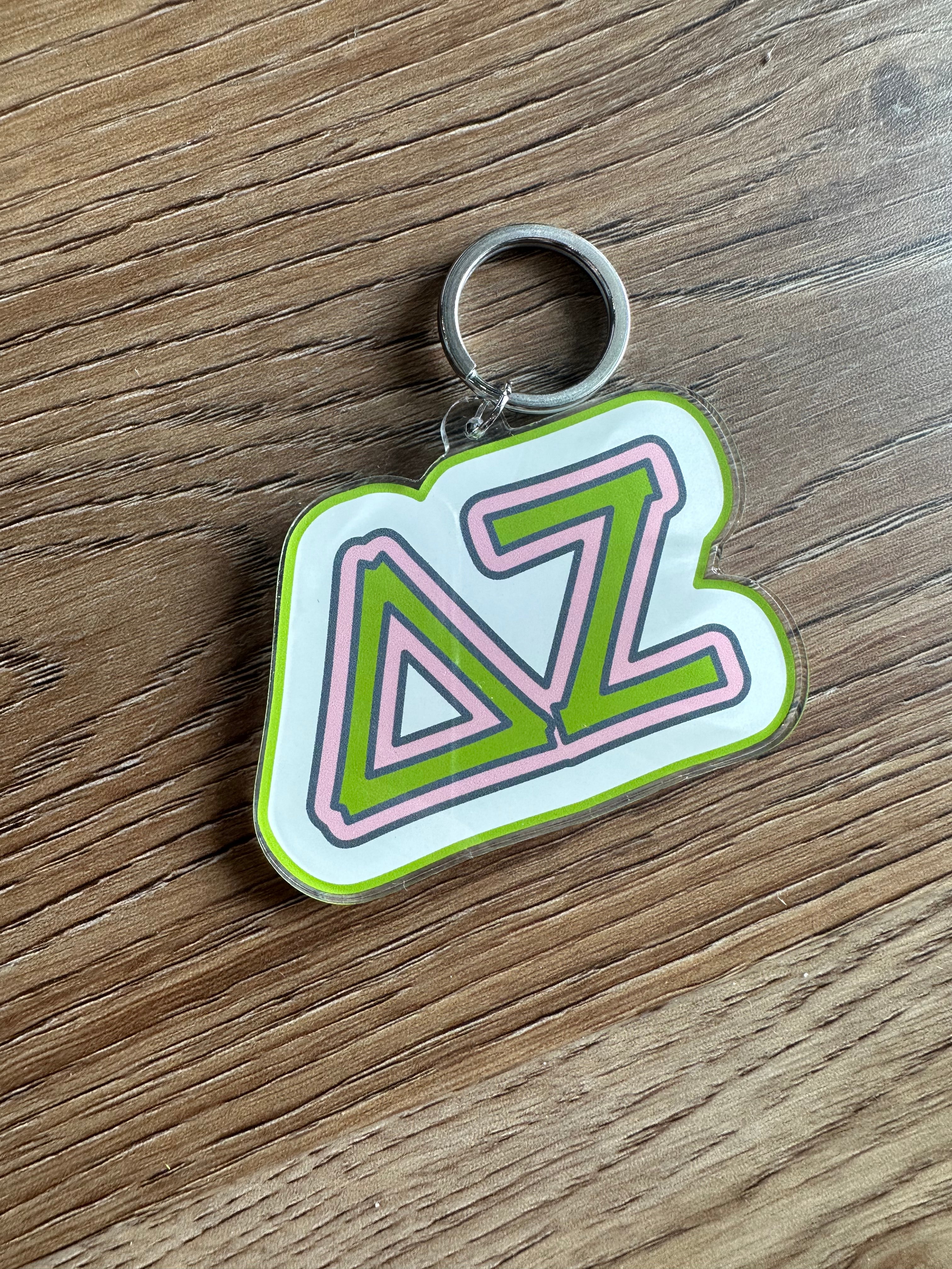 Show your sorority pride with an adorable keychain showcasing your sorority letters! They make awesome gifts for sorority "big" and "little" sisters, are great for swag bags, and make the perfect "happy" for no reason. Stainless steel hardware included, but they can be used as an ornament as well by adding a hook or ribbon! Hand made and officially licensed merchandise!