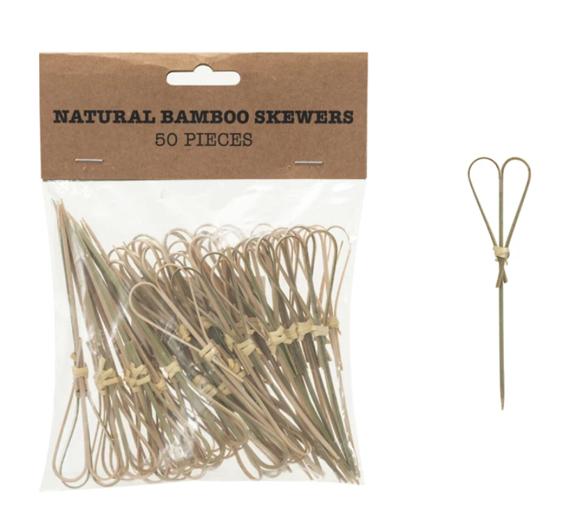 Bamboo Single Use Skewers w/ Heart Shaped Handles, Set of 50