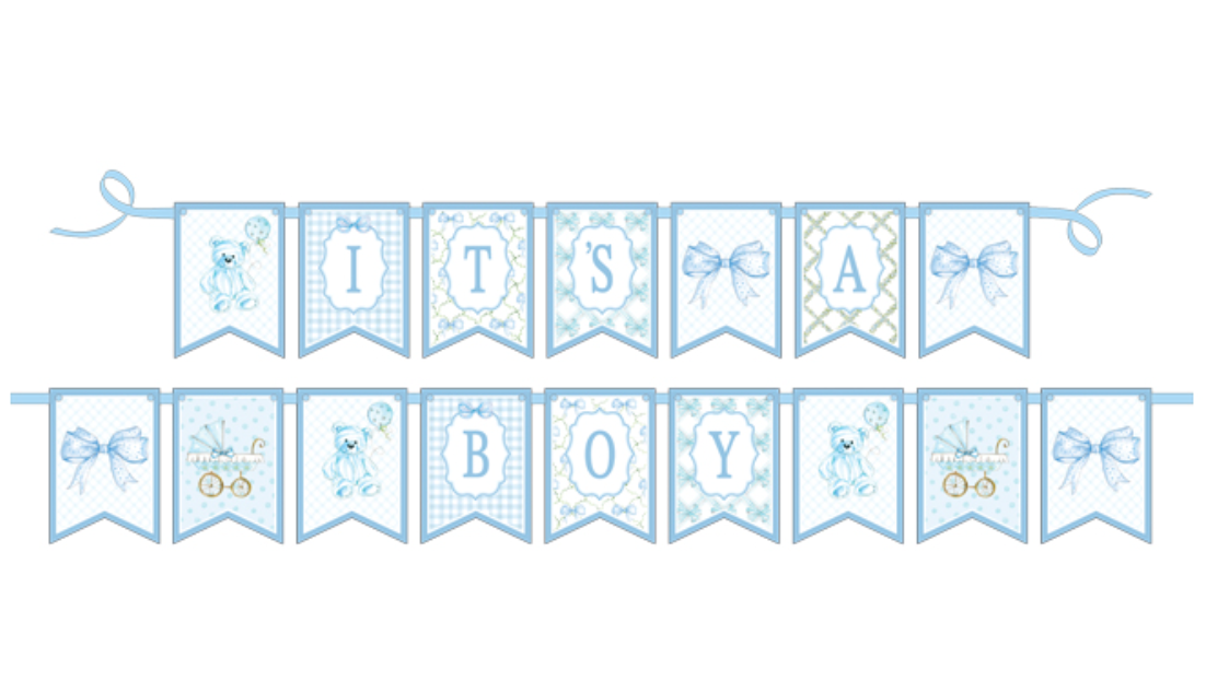 BLUE GINGHAM IT'S A BOY PARTY BANNER