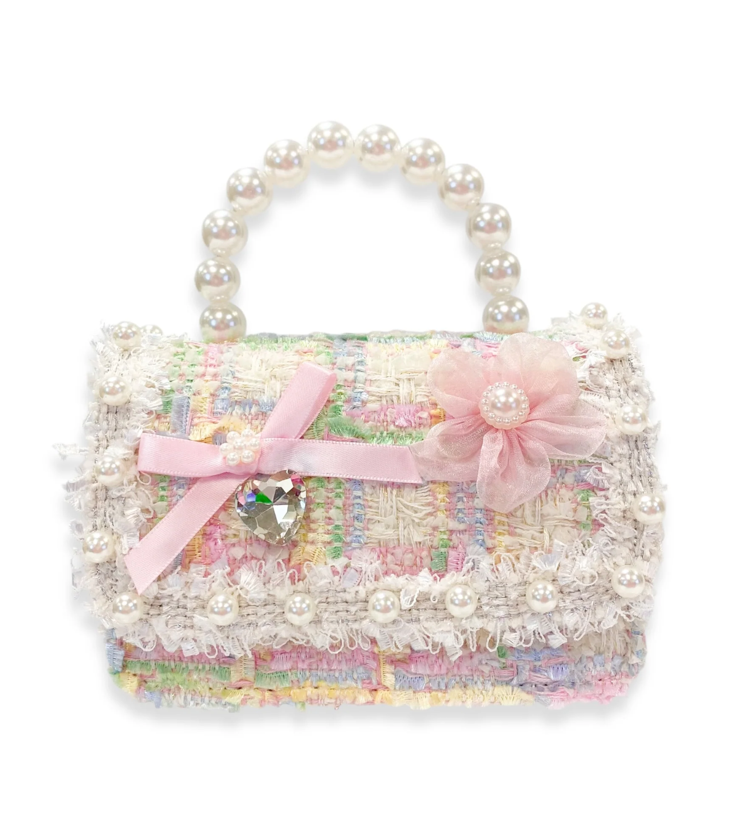 This smart & stylish tweed purse is easy for your child to bring along and fill with their trinkets! Come with detachable gold chain.
