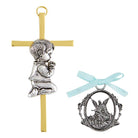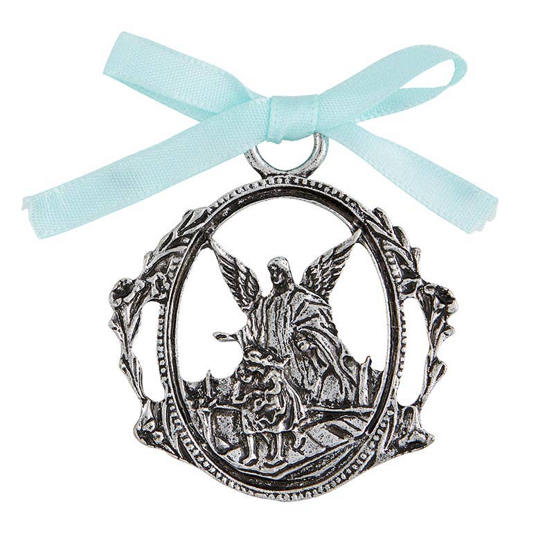The Guardian Angel crib medal is made of pewter finish with the image of a Guardian Angel with a blue ribbon for easy attachment. It can be personalized for a commemorative gift of the special day. Medal in packaging for gift giving or keepsake storage.