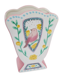 Ceramic Fan Shaped Vase w/ Scalloped Edge & Birds, Multi Color