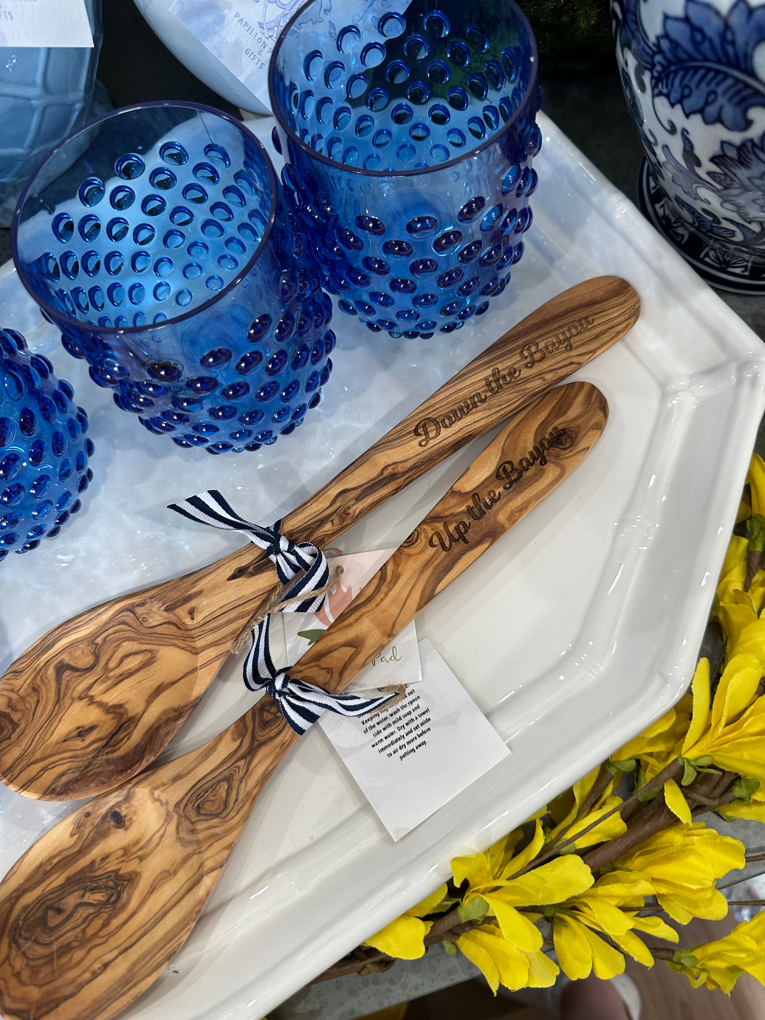 Show off hometown pride of Lafourche and Thibodaux with our handmade Wood Serving Spoon. This exclusive set crafted from Mediterranean olive wood and 100% plain-woven cotton promises to be a unique addition to your stock. Key Features: - Custom laser-engraved 12" olive wood serving spoon, a perfect novelty gift offering.