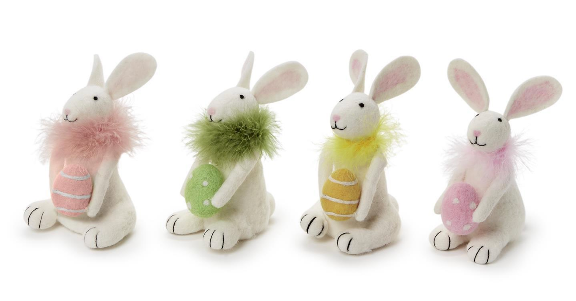 Easter Bunny with Egg and Feather Boa Accent Hand-Crafted Decor