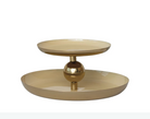 10" Round x 4-1/4"H Enameled Metal 2-Tier Tray, Gold Finish & Yellow,