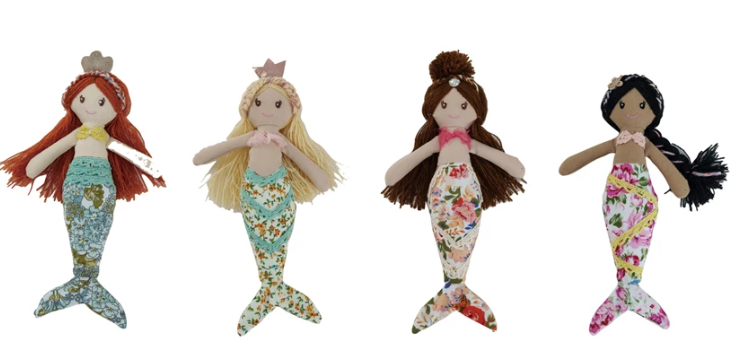 Fabric Mermaid Doll w/ Floral Pattern Tail