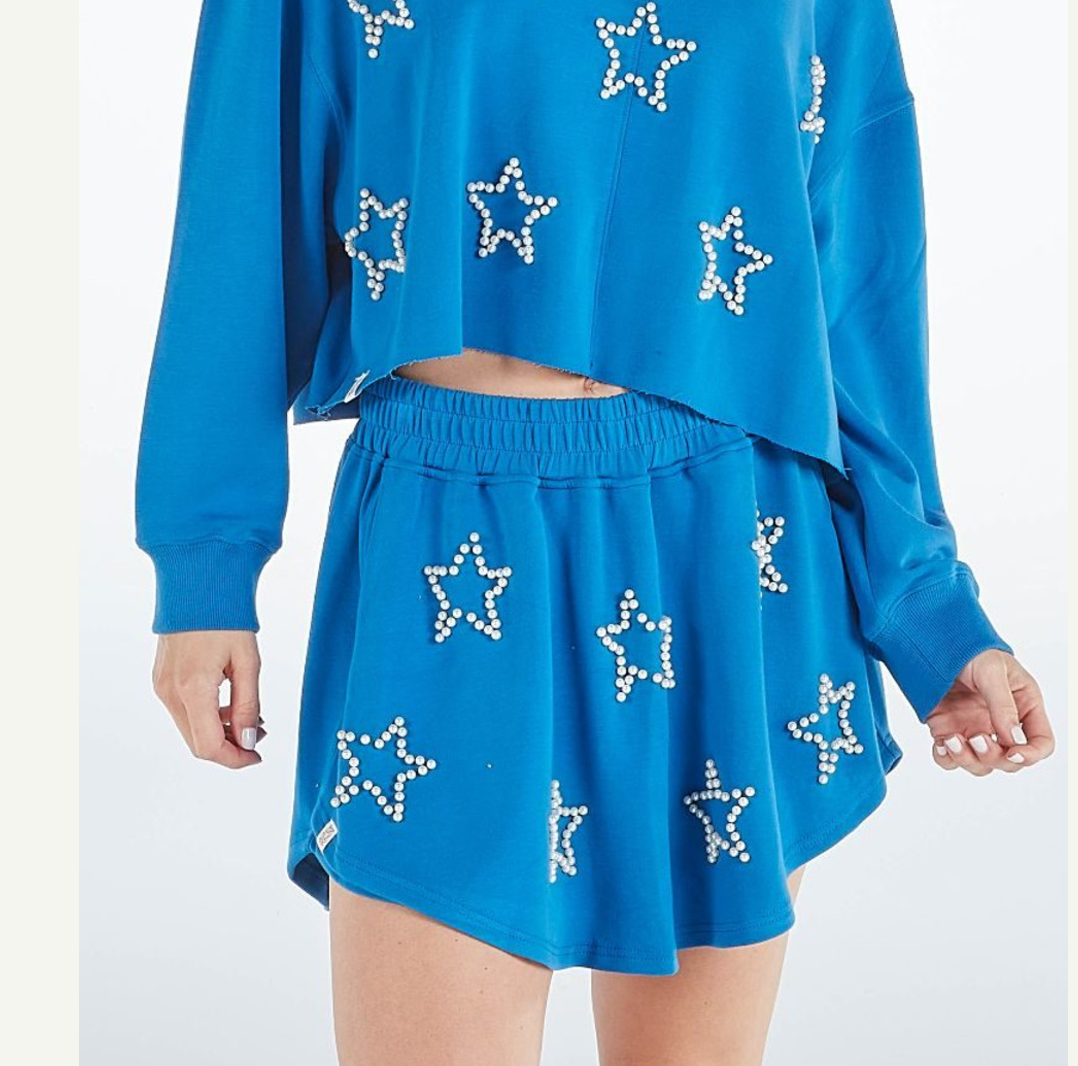Inject some fun into your look with this playful skort. It features faux pearl outlined star designs, interior short, elastic waistband with draw cord, and Simply Southern logo label at hem. Made of 48% modal 48% polyester 4% spandex.