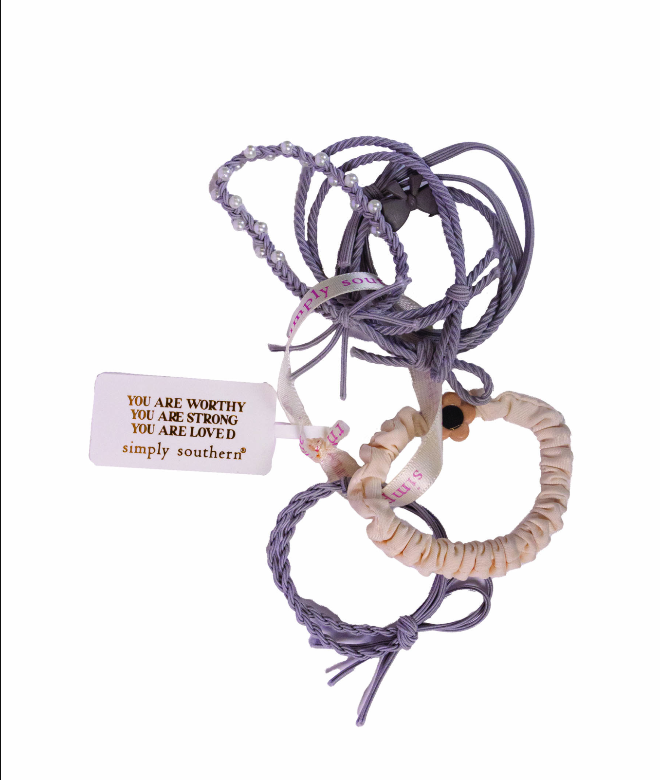 Secure your ponytail or bun with these fun collected hair ties! Available in a variety of colors and designs.