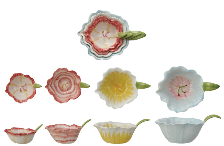 Hand-Painted Stoneware Flower Shaped Prep Bowls