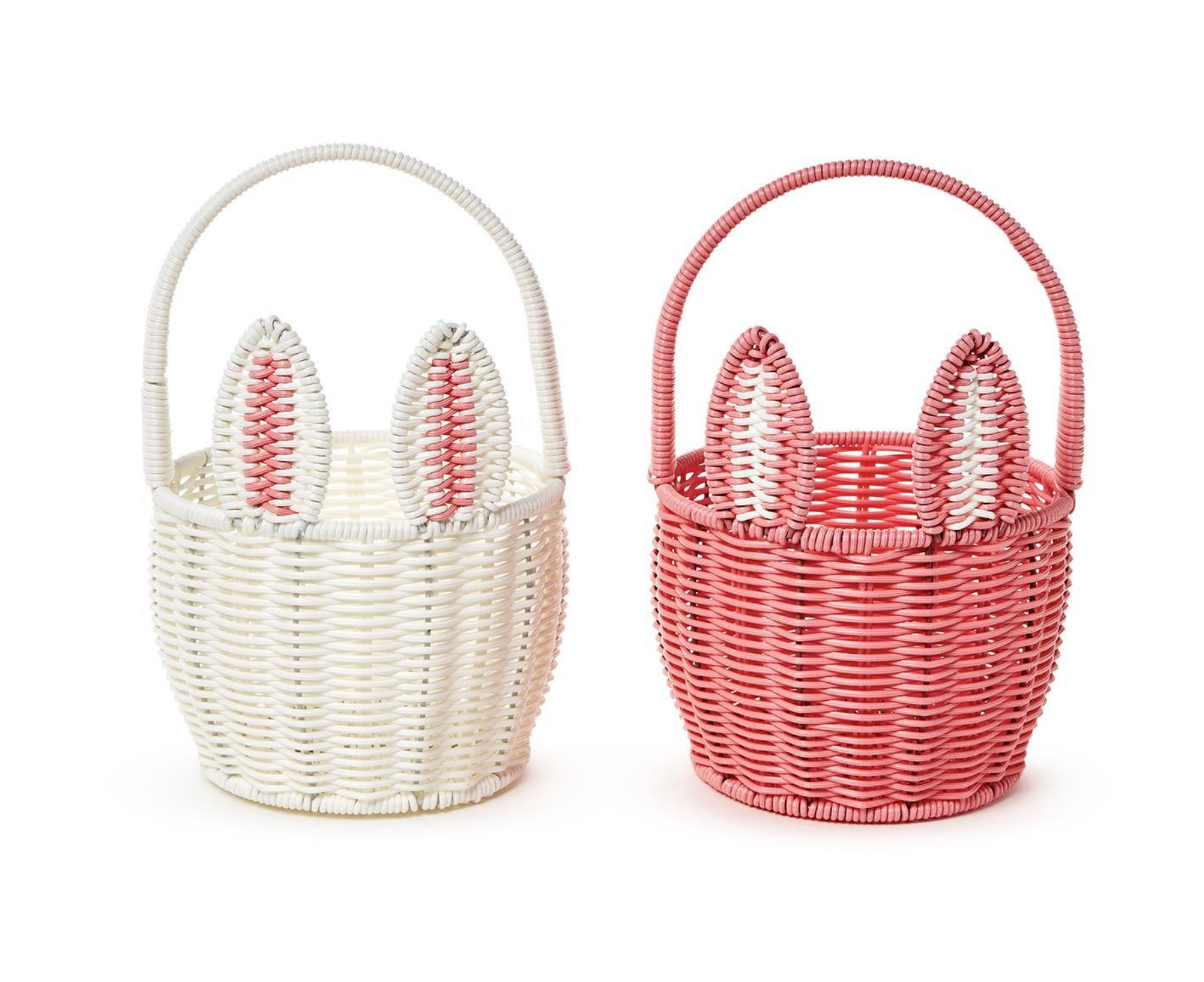 Hand-Woven Faux Wicker Easter Bunny Basket with Pom-Pom Tail and Handle