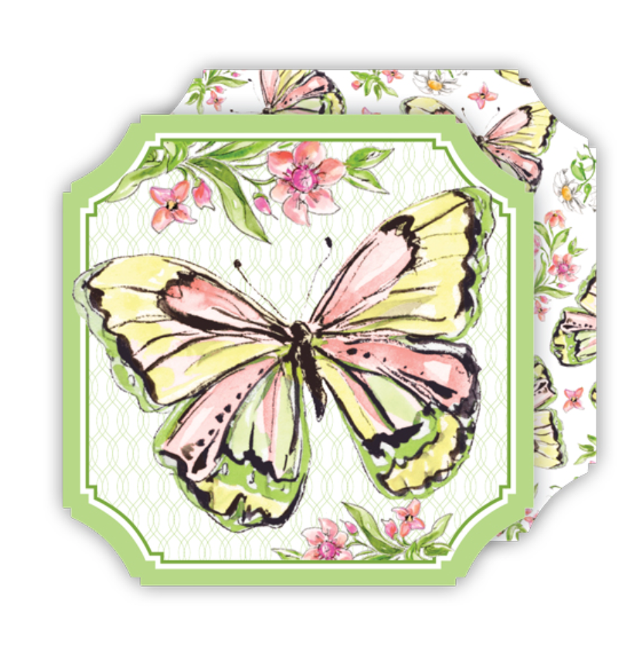 HANDPAINTED GREEN & CORAL BUTTERFLY TICKET COASTER