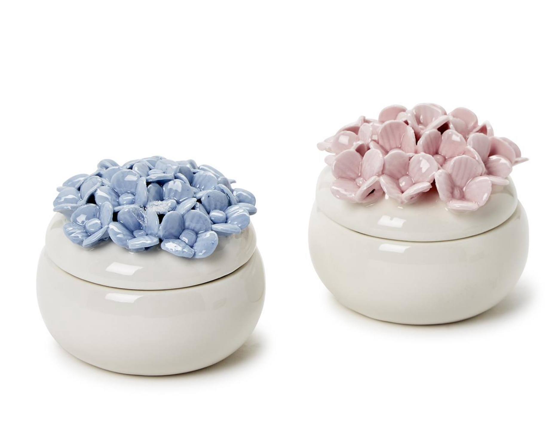 Adorn your vanity or bedside table with the charming Hydrangea Trinket Jewelry Box. Crafted from delicate porcelain, this exquisite box is available in pink and blue, adding a touch of elegance to any space. Hydrangea blooms adorn the lid, creating a whimsical and feminine look. Perfect for stowing away your favorite pieces of jewelry or trinkets, this box is as functional as it is beautiful.