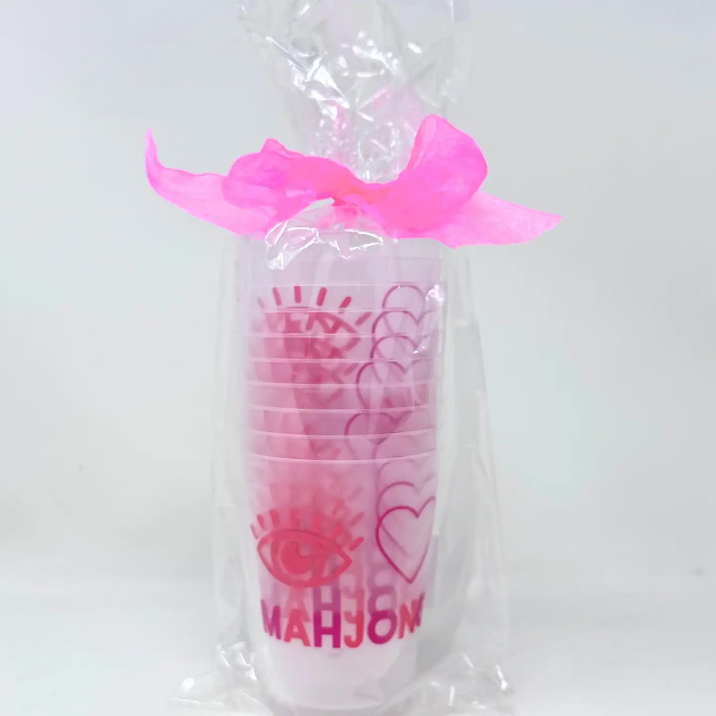 Sip in style with our I Heart Mahjong Cups! Perfect for your next mahjong night or any fun gathering, these cups add a playful twist to your favorite beverages. Featuring vibrant "I Heart Mahjong" designs that celebrate your love for the game, each frosted cup is sturdy, reusable, and ready to party! Whether you're serving up iced tea, cocktails, or a refreshing lemonade, these cups will keep the good vibes rolling all night long. Cheers to the game we love—one sip at a time! Comes in a sleeve of 10.