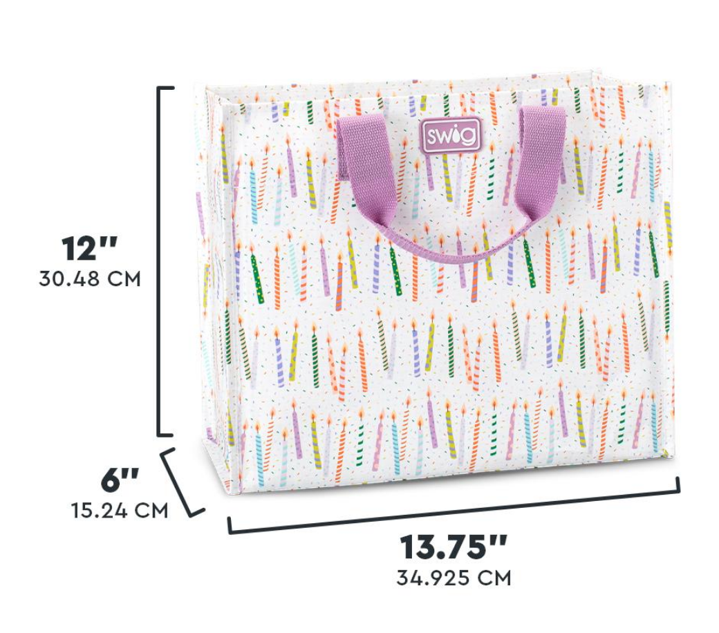 Swig Life's Reusable Bags are perfect for all of life's celebrations; birthdays, weddings, and holiday parties, and are a go-to favorite for everyday use. This reusable bag is ideal for large to medium-sized gifts like shoes, books, or gifting aย Swig Lunch Bag. Reuse this tote for girlfriend get-togethers, kid play dates, or a trip to the market.