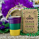 Introducing GEAUX GREEN GEAUX CUPS, four 16 oz stainless steel cups crafted for Mardi Gras and beyond! Adorned with a classic Mardi Gras design, these cups keep your drinks icy cold during the festivities. Not just drinkware, but souvenirs! They're the perfect keepsake from your Mardi Gras experience. Join the celebration sustainably with GEAUX GREEN GEAUX CUPS, a stylish, eco-friendly, and delightful way to keep your drinks cool!