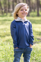 Our one-of-a-kind 1/4 zip pullover boasts our unique prints on the inside neck liner. This Navy Pullover features our Tailgate Print on the inside neck liner. Your favorite new pullover, perfect for dressing up and everyday casual wear.