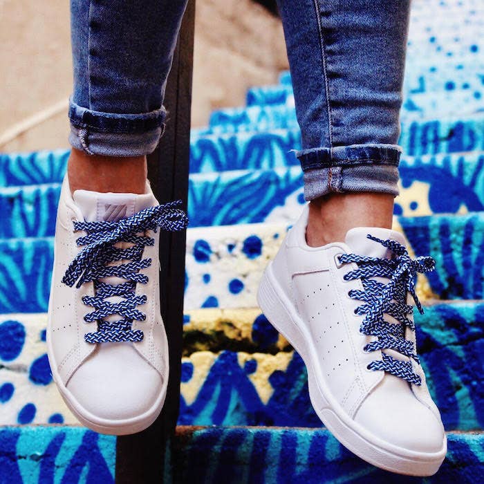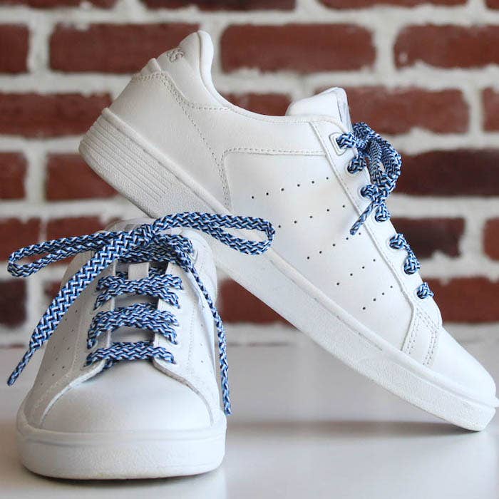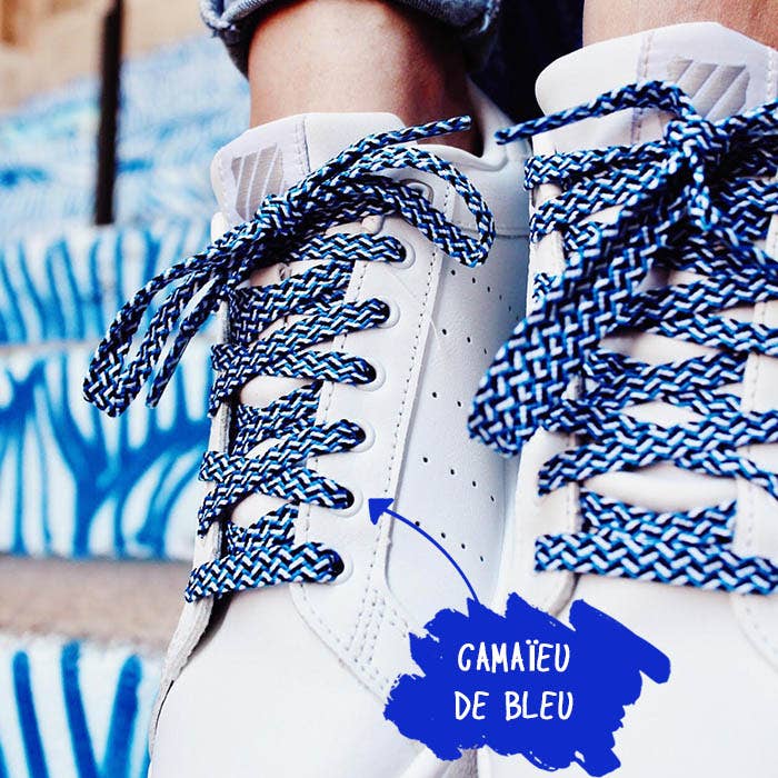 Let's make way for summer, we're putting color on our feet! MARINS BLEU shoelaces are the perfect shoelaces for your seaside vacation. (But we don't blame you if you wear them in the mountains ❤️) The small ➕: High quality braided threads that remain stretchy just enough to have tight laces! Their length is ideal for street sneakers such as Stan Smith, Gazelle, Gazelle, Golden Goose, Air Force 1, Veja, Victoria, Converse low... * Length: 120cm * Width: 1cm * Material: Polyester * Color: Blue and White * Care instructions: Machine washable at 30 degrees or by hand