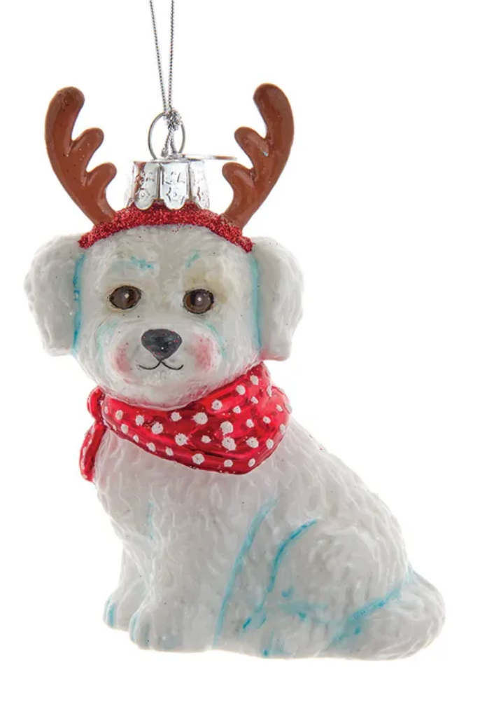 Noble Gems™ Bichon Frise With Antlers Glass Ornament