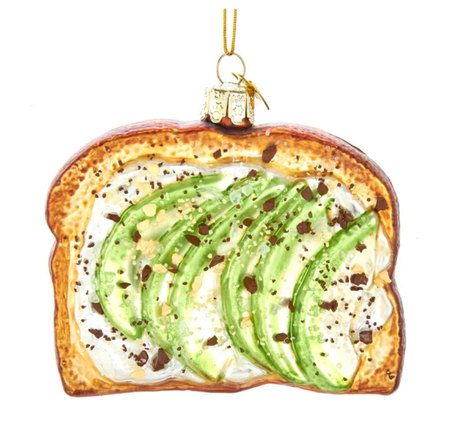 3.75"NOBLE GEMS AVOCADO TOAST GLASS ORN.