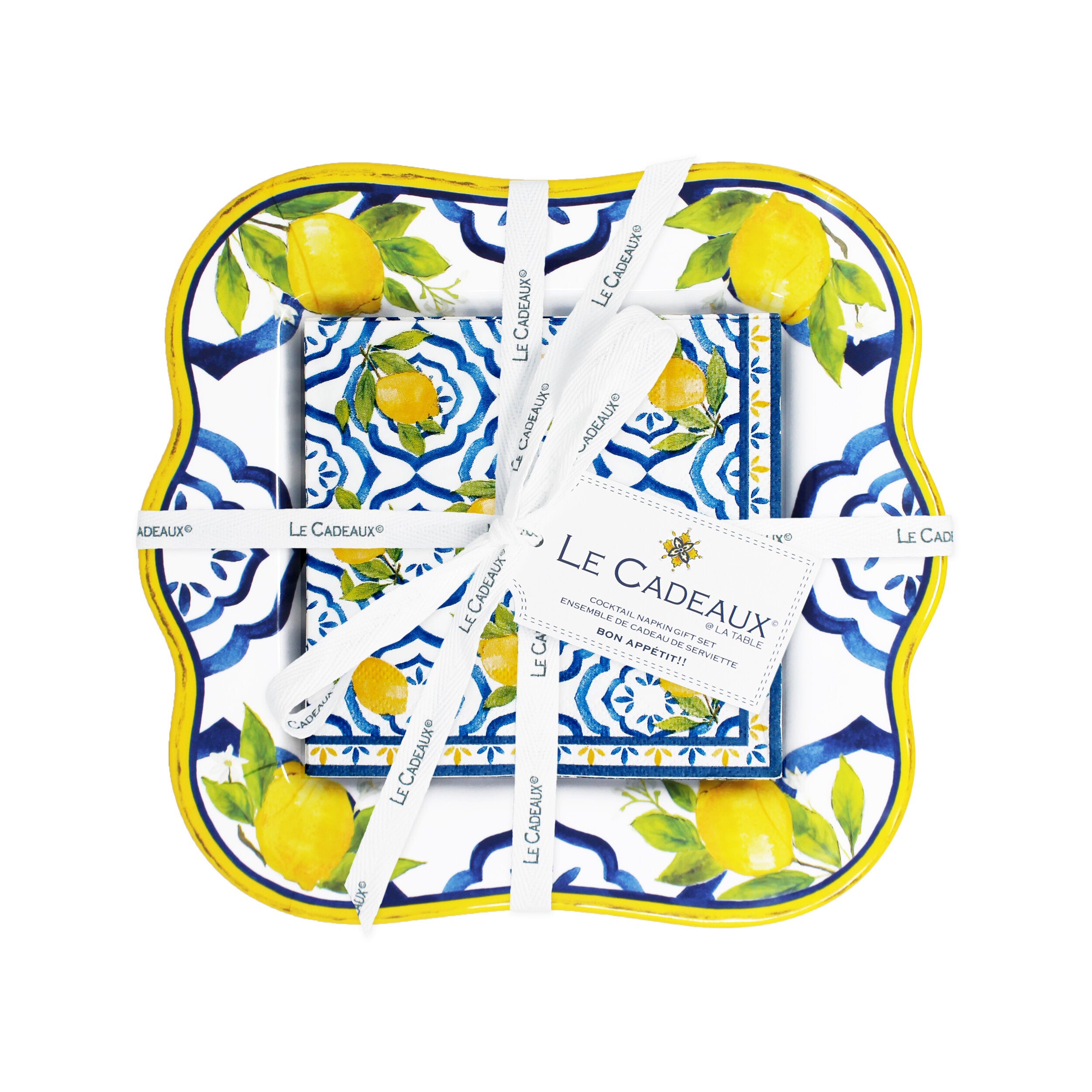 Our Palermo decorative napkin holder complete with matching cocktail napkins is a "must have" entertaining accessory. It's already gift packaged look makes gift giving effortless. Product includes 1 x napkin holder 8.75 " square and 1 x pack of 20 Cocktail Napkins with dimensions 5" x 5" - 10” by 10” when opened