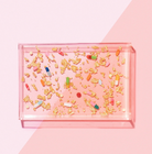 The difference is clear. These acrylic trays offer a unique and transparent way to serve up some style! Sassy and a little bit extra, this tray features various over the counter medications, hand-filled sprinkle/glitter capsules and gold flake. All pills are covered in a thick layer of resin, making the tray totally waterproof and easy to clean.