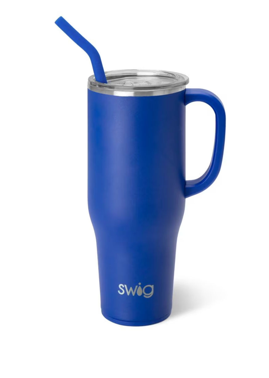 Hydrating has never been easier with our 40oz Insulated Mega Mug! A cup holder-friendly frame, a comfort-grip handle, and a plastic straw with a silicone flexi-tip all come together to create your new favorite Swig.