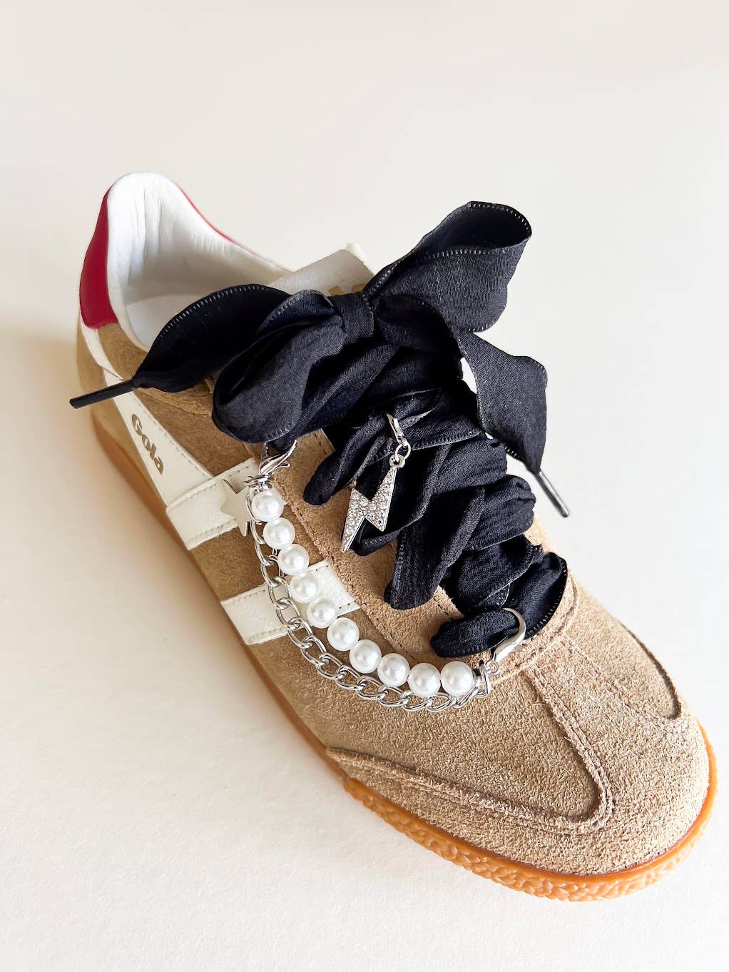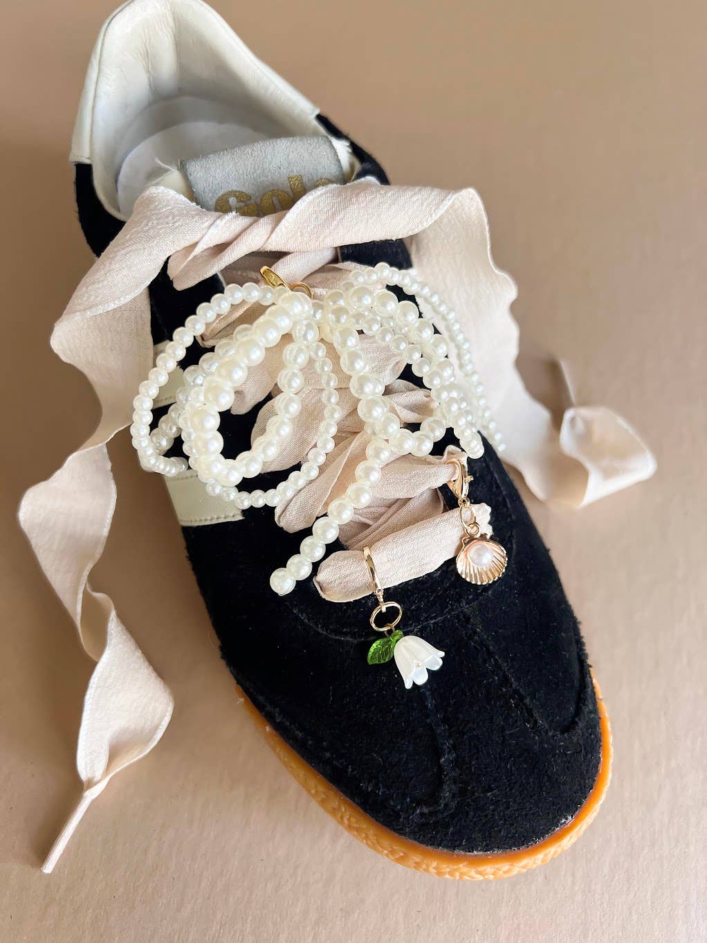 Give your sneakers a glow-up with these chic and whimsical Ribbon Lace Charm Sets! Each set features soft whimsical shoe laces, dainty pearls, and eye-catching pendants that turn plain kicks into fashion-forward statement pieces. Perfect for boutiques looking to offer their customers a fun and stylish way to personalize their shoes. These charm sets are as unique as the people who wear them—perfect for sneakerheads, trendsetters, and anyone who loves a little flair in their step. Available in elegant color themes like classic black, blush pink, creamy ivory, and bold burgundy. They’re retail-ready with luxe branded packaging, making them a must-have accessory for gifting or elevating any sneaker collection