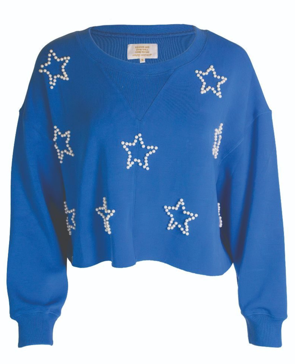 Relax and lounge in this comfortable Piper Pullover. It features faux pearl star outlines, rib neck and cuffs, cropped fit and Simply Southern logo label at hem. Made of 48% modal 48% polyester 4% spandex.