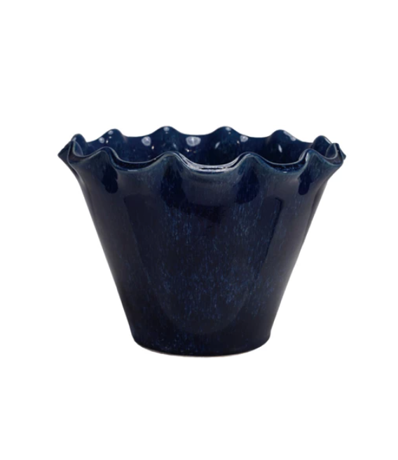 10-1/4" Round x 7-1/2"H Stoneware Planter w/ Ruffled Edge & Drainage Hole, Reactive Glaze, Blue (Holds 6" Pot)