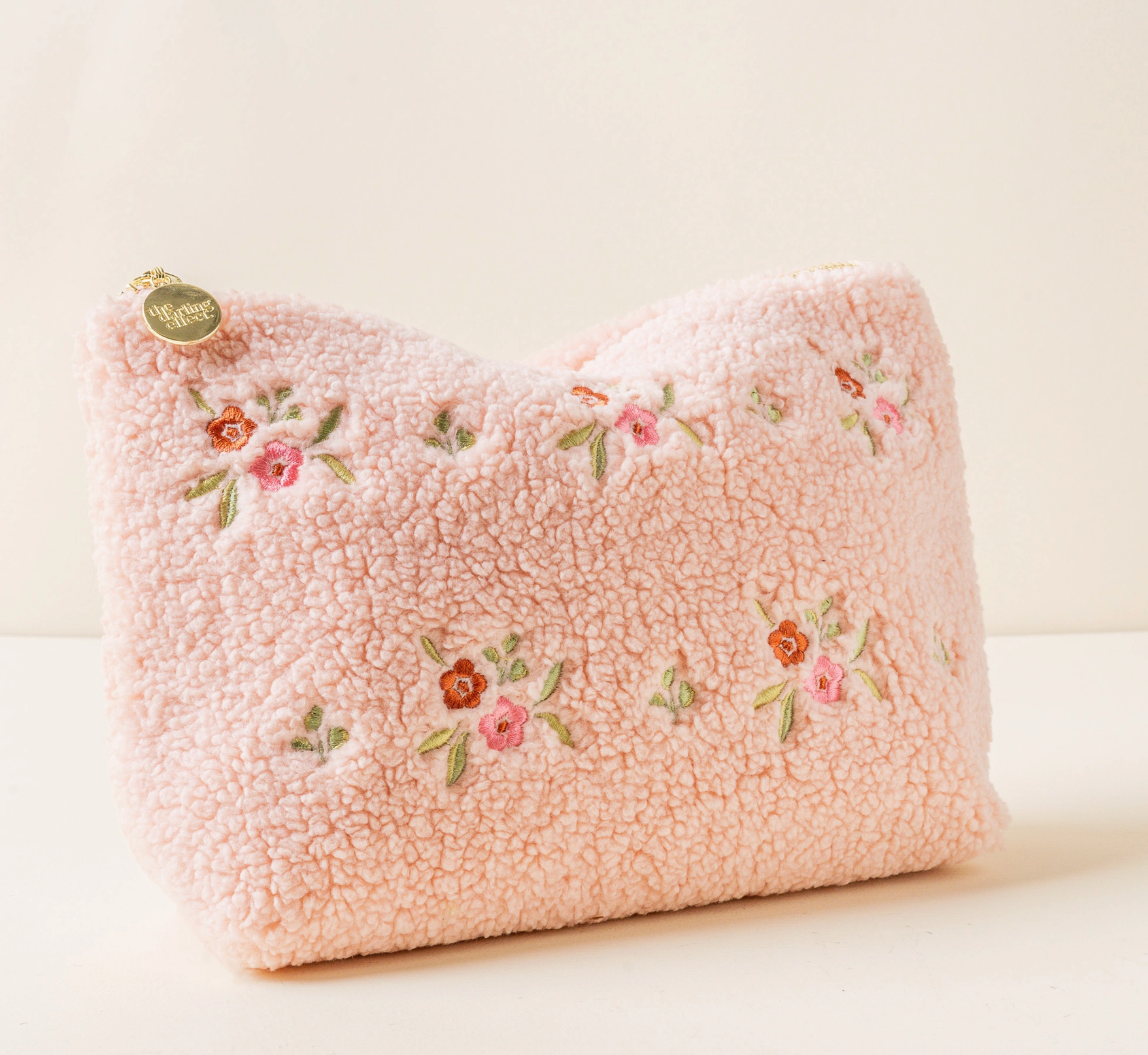 Add a cozy touch to your essentials with our rectangle teddy pouches. Crafted from soft sherpa fabric, these pouches feature a wipeable lining for easy cleaning and gold zippers and hardware for a polished look. The interior is lined with a fun printed fabric, making it as stylish on the inside as it is on the outside. The large rectangle size is perfect for keeping your items organized, and it pairs beautifully with our square or circle options.