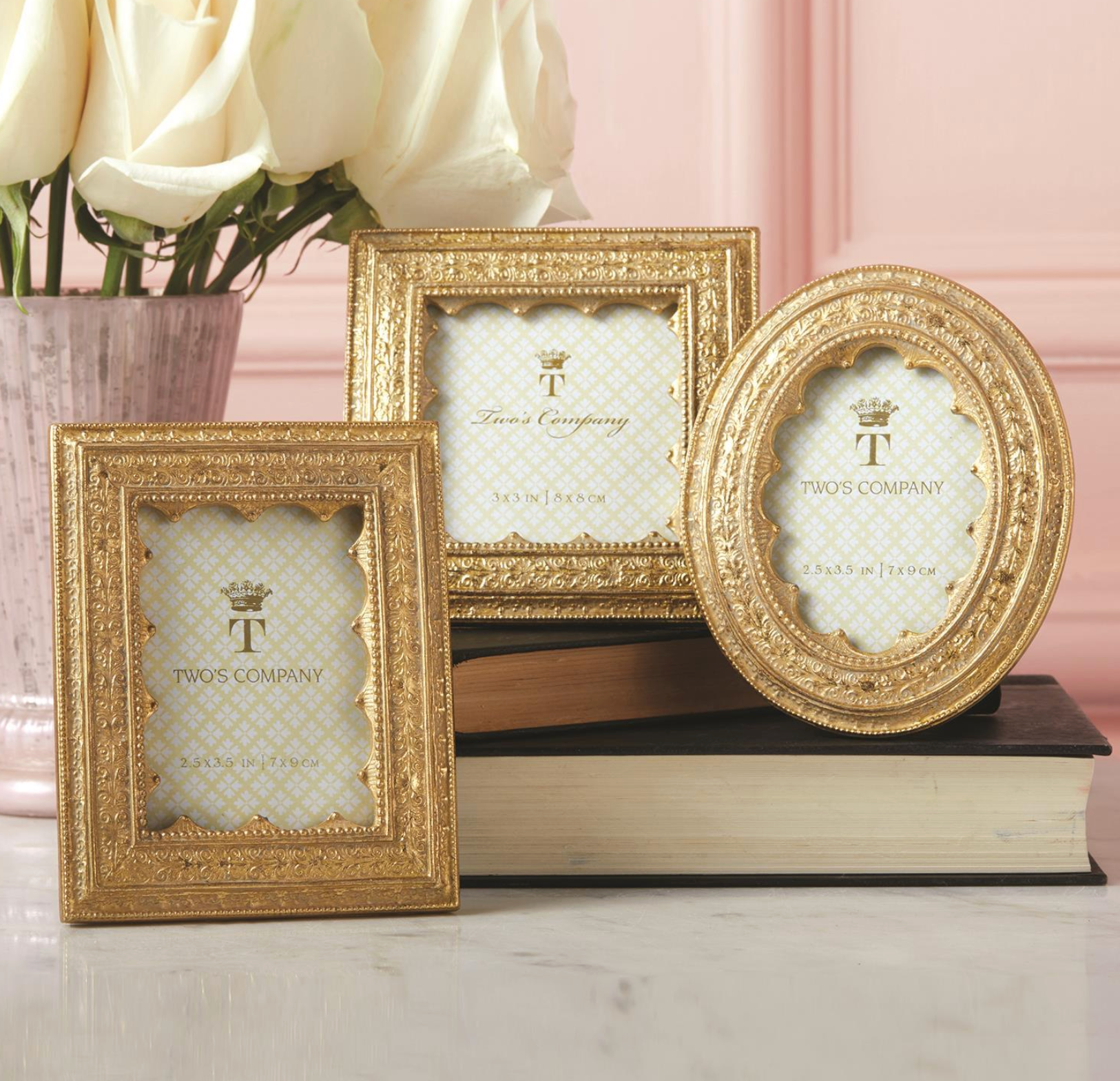 This classic look will never go out of style. Surround your memories with this vermeil ornate golden frame for an elegant and sophisticated look.