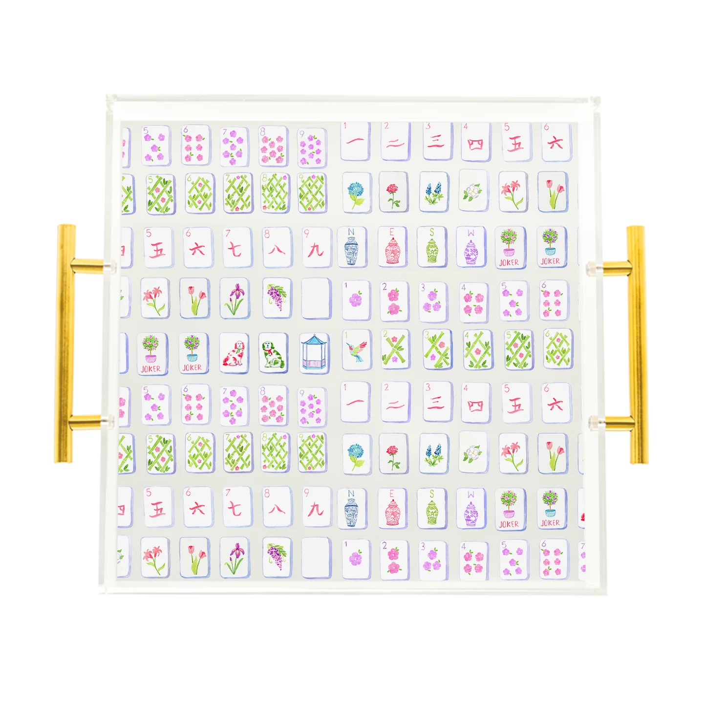 Mahjong Tiles Acrylic Tray- Gold Handles