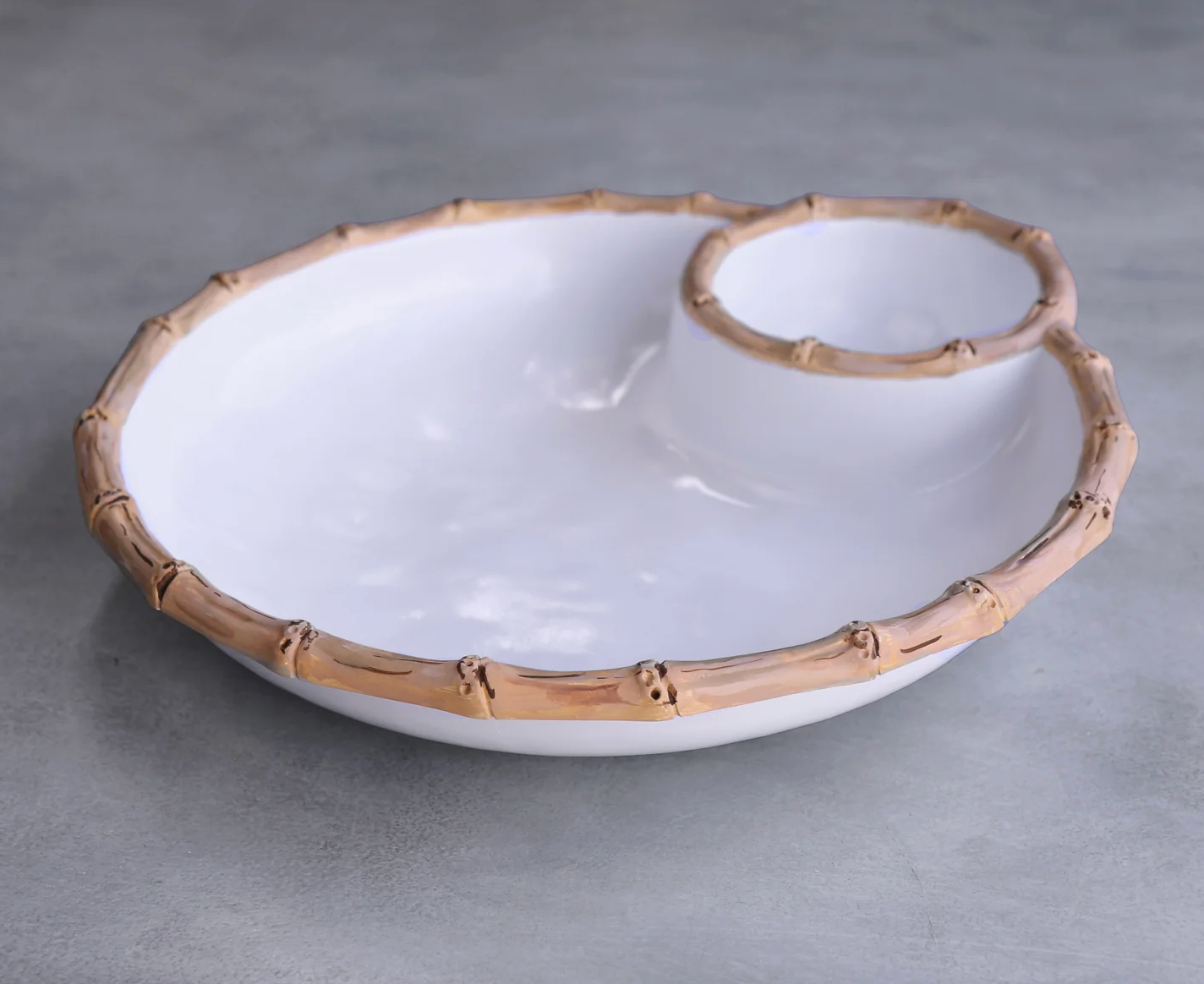 VIDA Bamboo Large Chip & Dip Bowl (White and Natural)