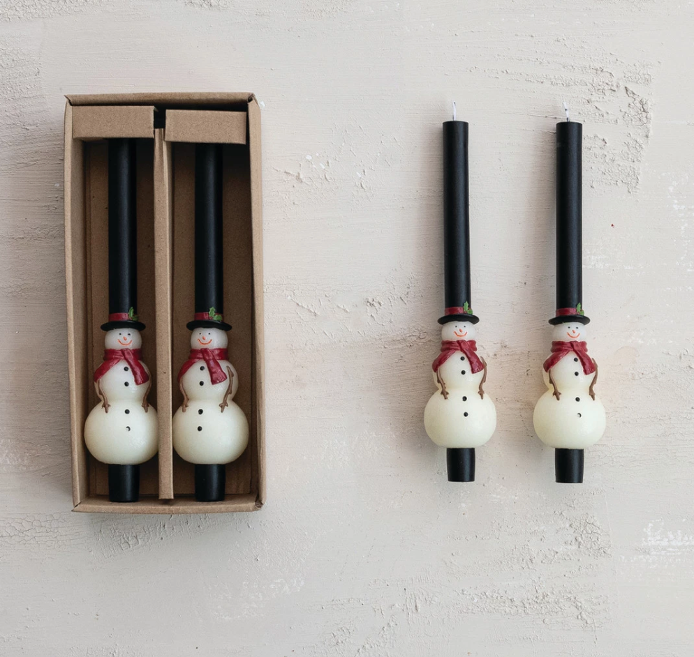 Add festive charm to your holiday décor with this set of 2 Unscented Snowman Shaped Taper Candles. Standing 10" high, each candle is crafted in vibrant multi-colors and features a classic snowman design. Made from high-quality wax with cotton wicks, they provide a clean, reliable burn with an estimated 12-hour burn time. Neatly packaged in a box, these charming candles are perfect for Christmas table displays, mantel décor, or gifting to loved ones.