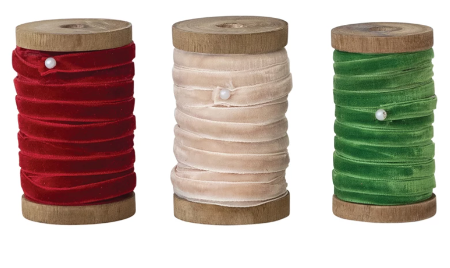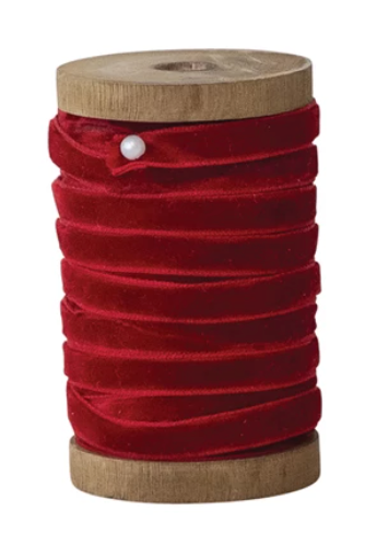 10 Yard 1/4"W Velvet Ribbon on Wood Spool