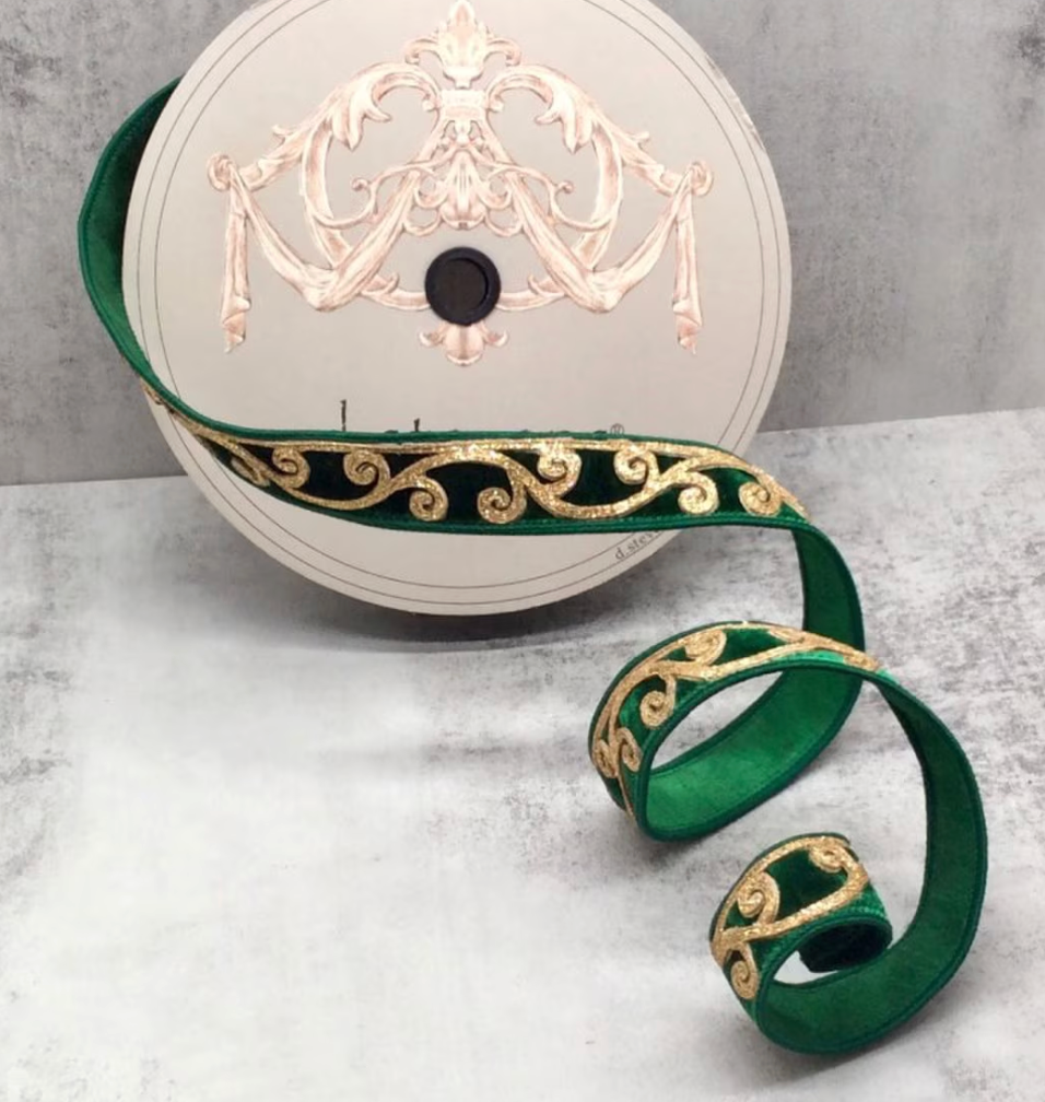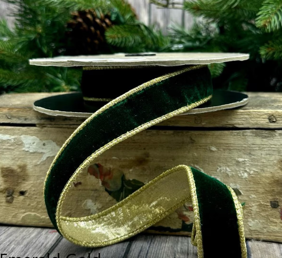 1" Lush Velvet Metallic Light Gold Back, Emerald